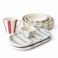 La colección Amalfitana está inspirada en los colores del invierno italiano. Cada pieza combina la simpleza de la cerámica artesanal con diseños alegres a rayas y tonos plenos que evocan verano, sol y naturaleza.